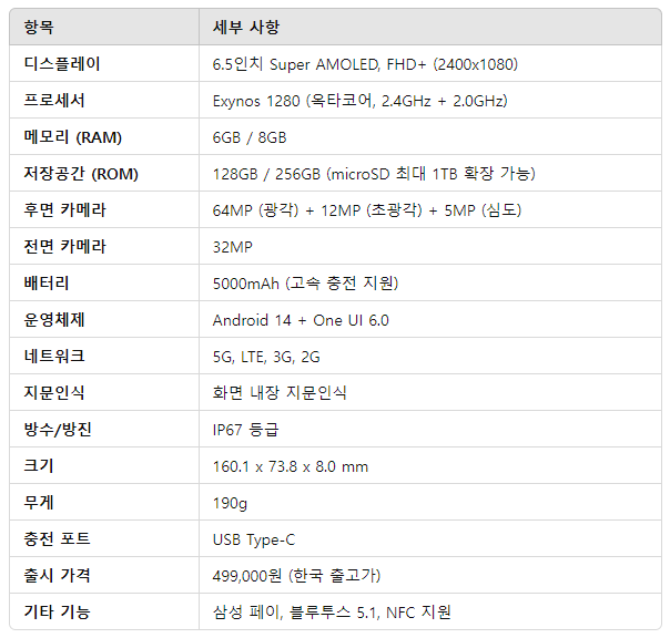 먼저, 갤럭시 A35 5G는 삼성의 A 시리즈 중에서도 가성비가 좋은 모델이에요. ‘5G’ 네트워크를 지원하면서도 합리적인 가격으로 제공되죠. 아래는 A35 5G의 주요 스펙입니다