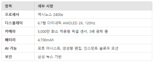 2. 갤럭시 S24 FE의 특장점은 무엇일까요?
